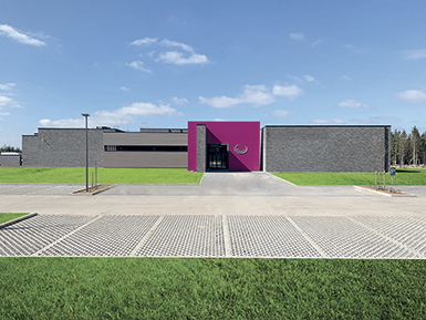Le bâti de haute qualité architecturale se fond dans la masse végétale du parc cinéraire forestier et du bois de la Maladrie.